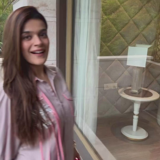 This elegant Crab Co-ord Set features a light peach fabric adorned with meticulously hand-embellished crab motifs, showcasing expert craftsmanship. The subtle color palette combined with detailed embroidery offers a refined and unique look, perfect for those seeking sophisticated yet distinctive attire. Ideal for stylish occasions, this set balances comfort with artisanal design.