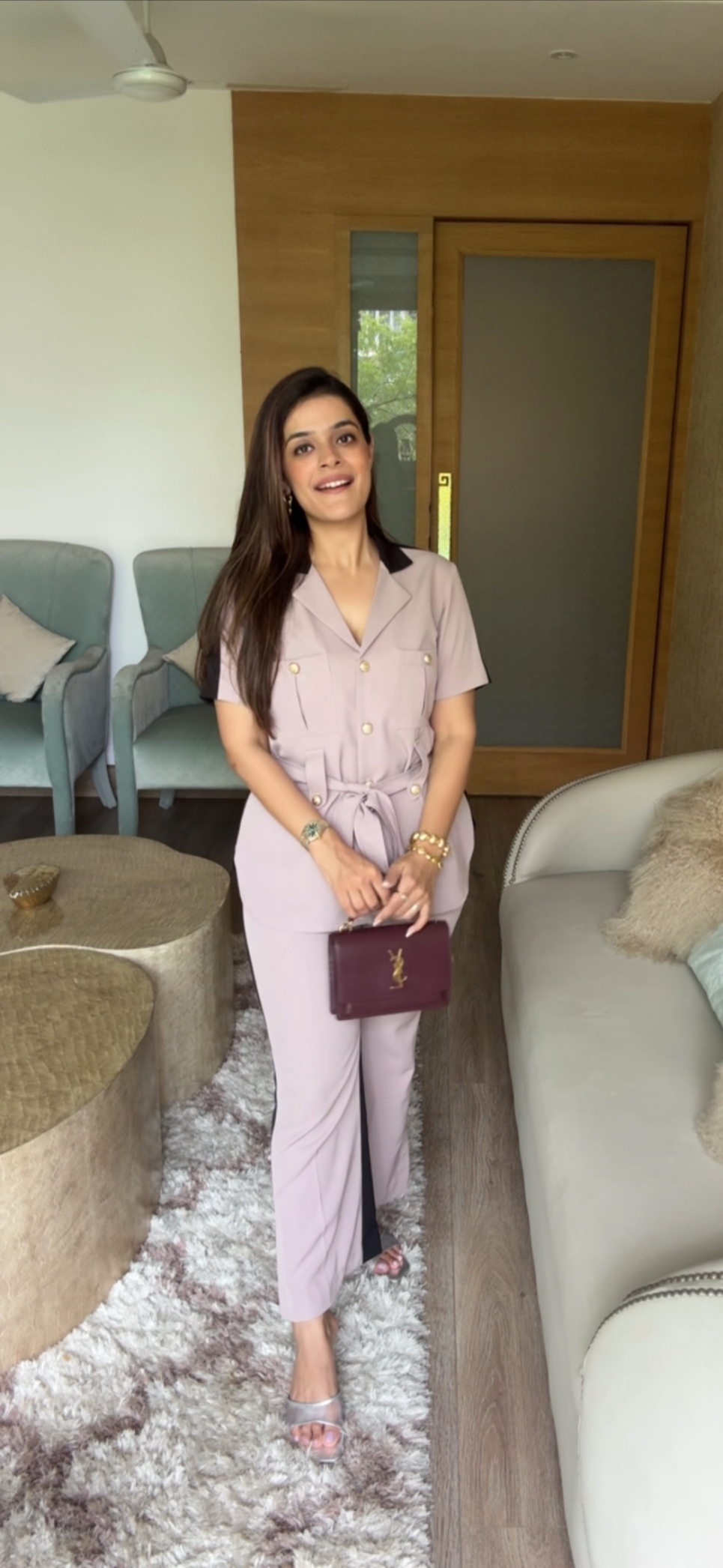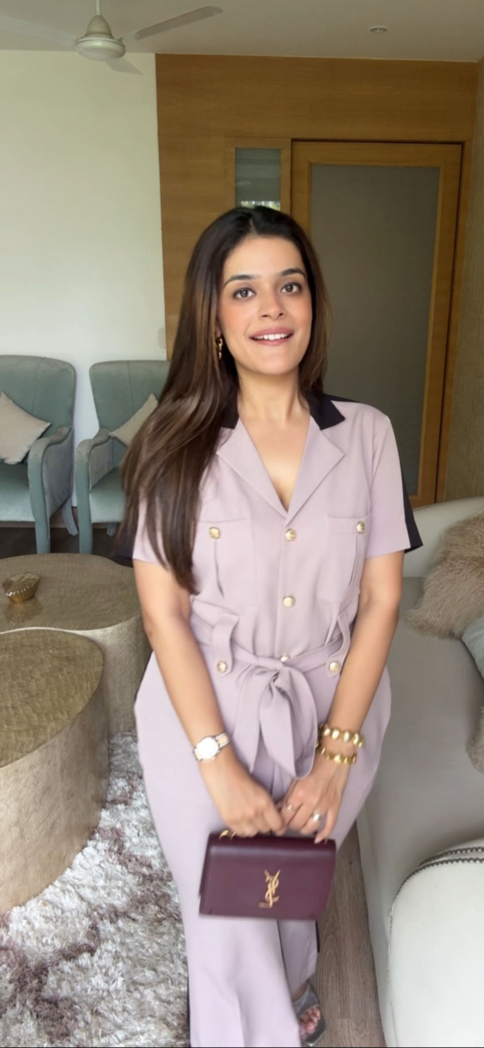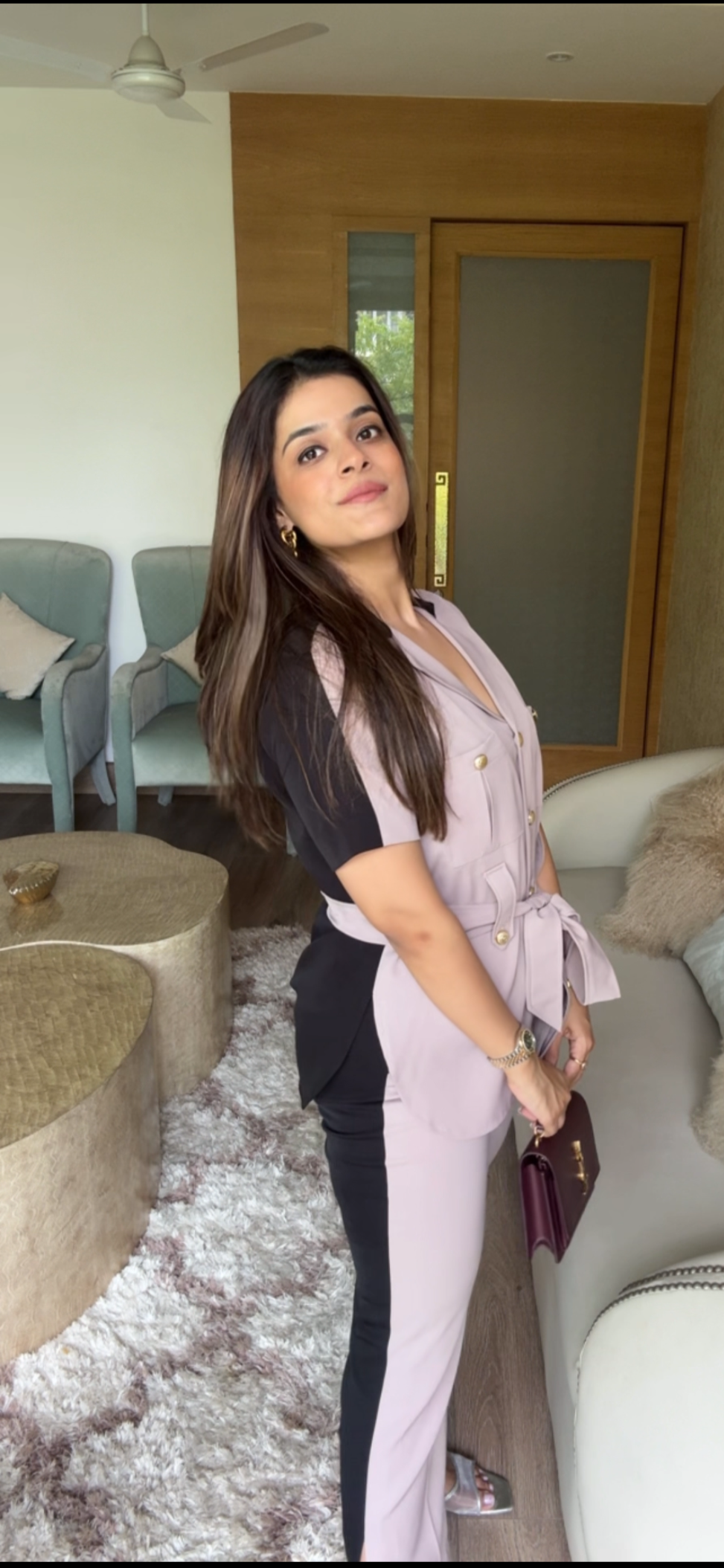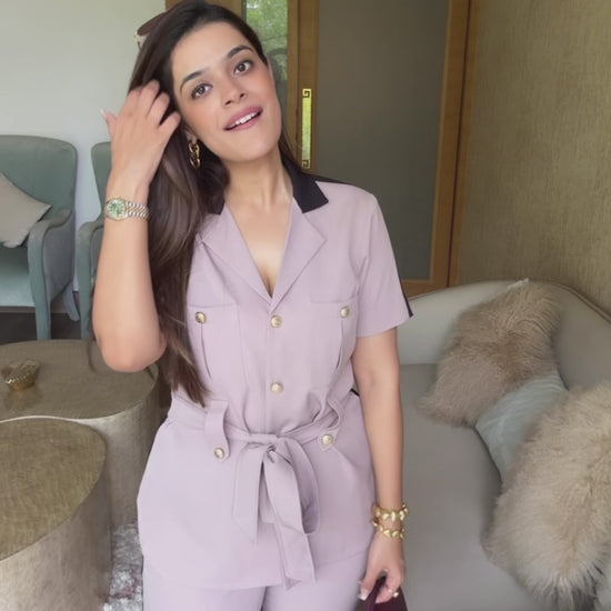 This Dual Tone Maria Co-ord features a sophisticated blend of colors, expertly coordinated with matching pocket and belt details. Designed for a polished and cohesive look, it offers both style and functionality, making it an ideal choice for those seeking refined elegance in their wardrobe.