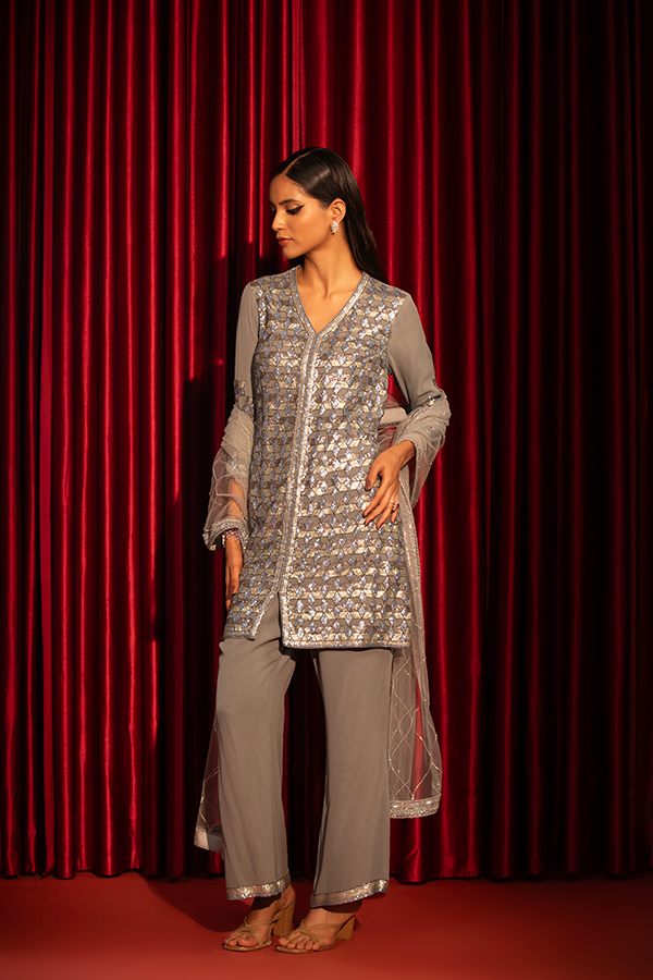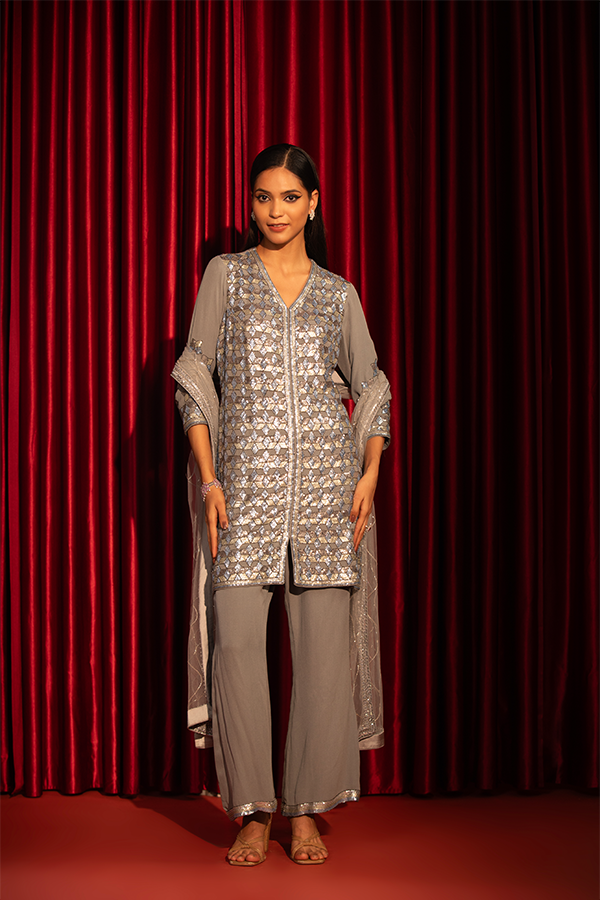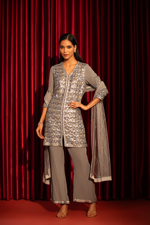 Embrace effortless sophistication with Twilight Shimmer—a dazzling blend of intricate embellishments and flowing elegance. This ensemble captures the magic of starlit nights, perfect for weddings, soirées, and celebrations that call for a touch of radiance.